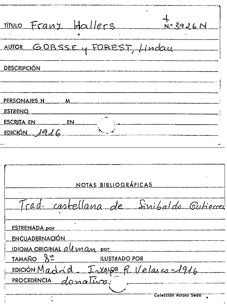 Franz Hallers : comedia dramática en cuatro actos / de Lindau Gorsse [!] y Forest, traducida por Sinibaldo Gutiérrez by
