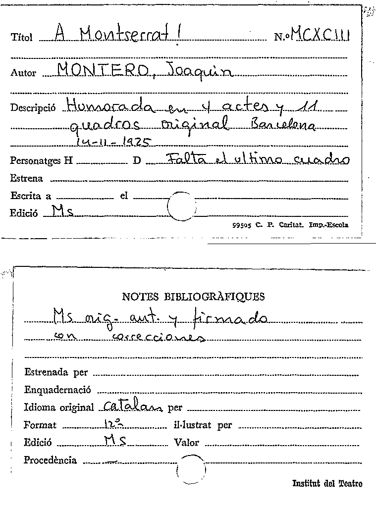 A Montserrat! [Manuscrit] / Joaquim Montero by