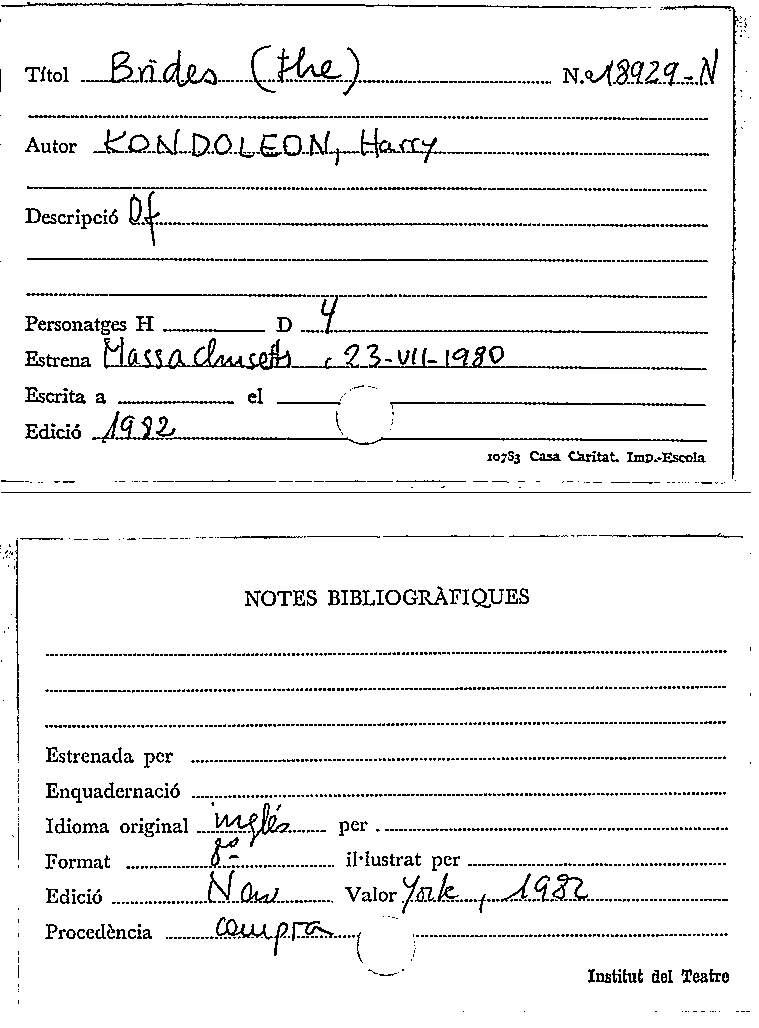 The Brides / Harry Kondoleon by