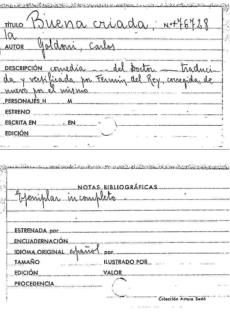 La Buena criada / Carlo Goldoni by
