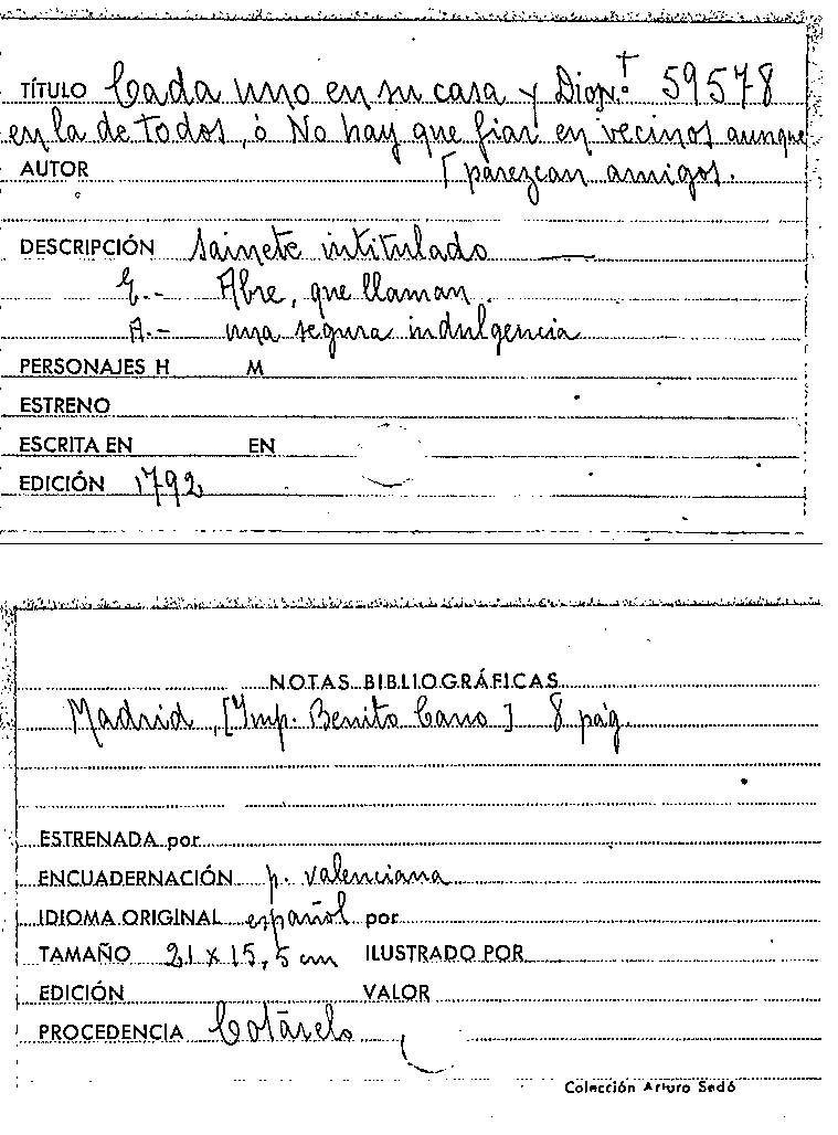 Cada uno en su casa y Dios en la de todos, ó, No hay que fiar en vecinos aunque parezcan amigos