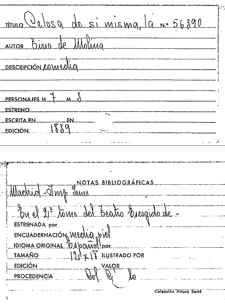 La Celosa de sí misma / Tirso de Molina by