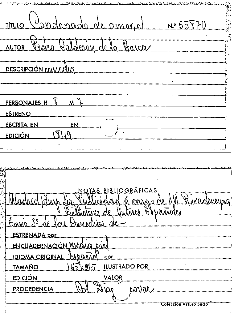 El Condenado de amor / Pedro Calderón de la Barca by