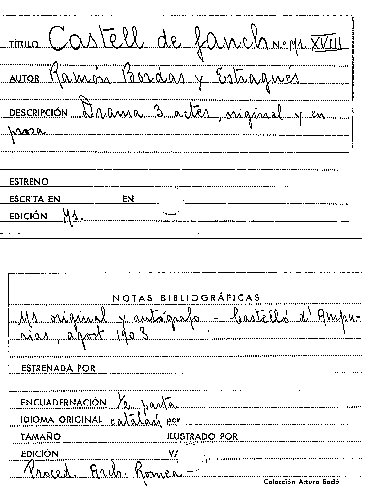 Castell de fanch [Manuscrit] / Ramon Bordas i Estragués by