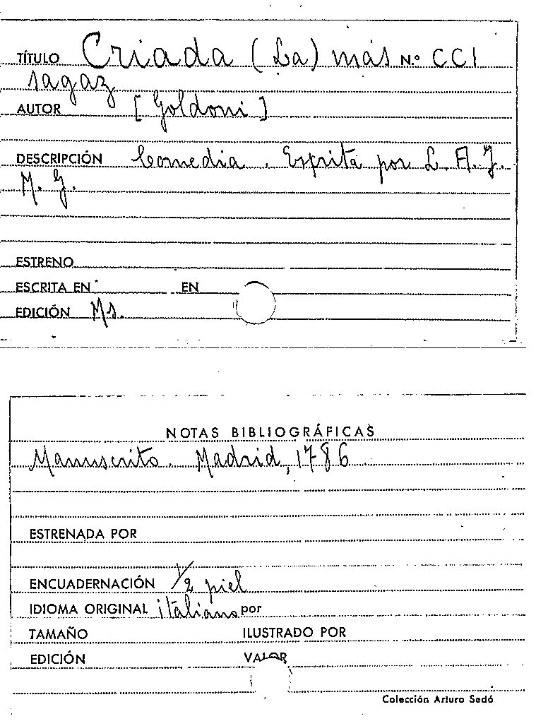 La Criada más sagaz [Manuscrit] / Carlo Goldoni by