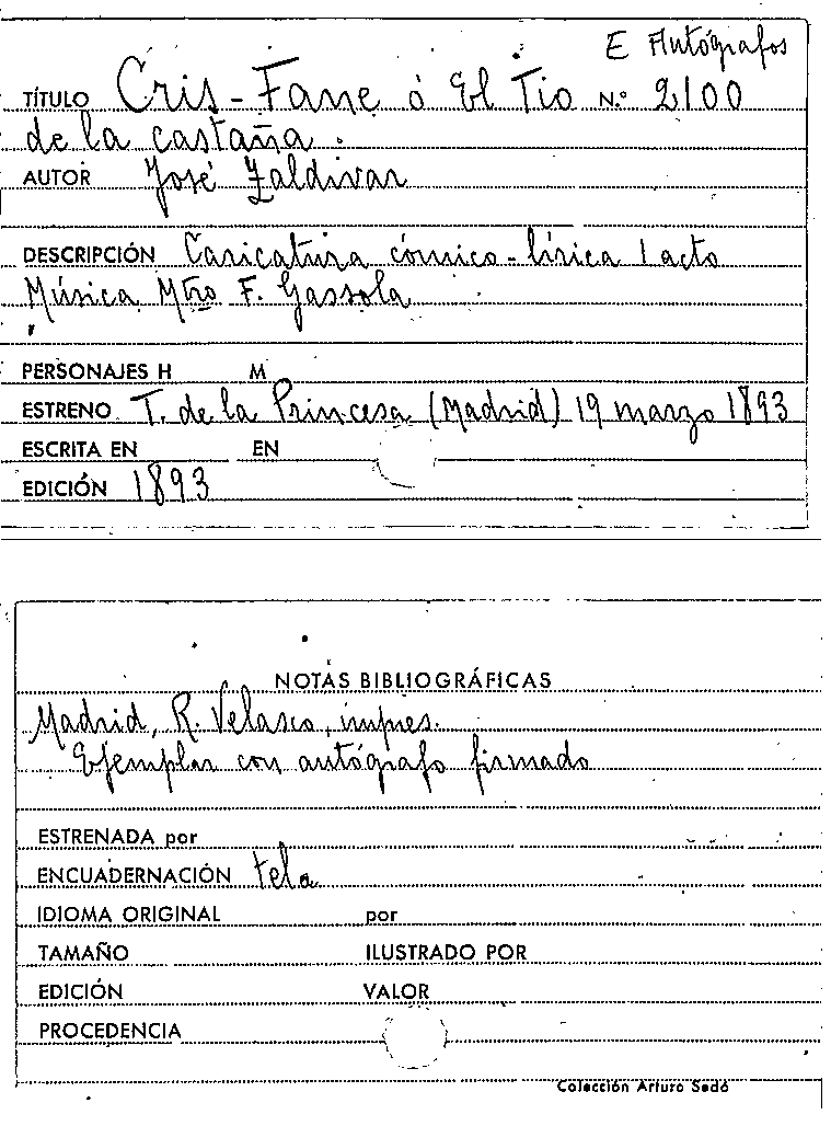 Cris-Fane, o, El Tio de la castaña / José Zaldívar by