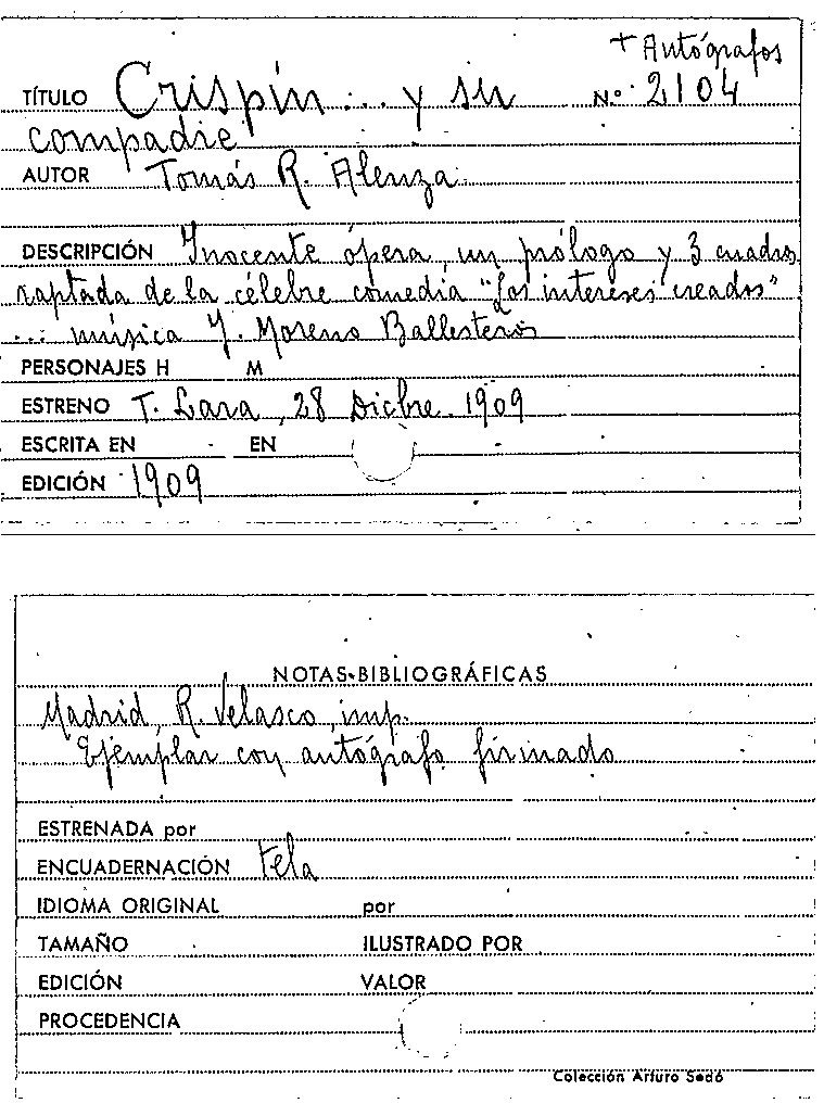 Publication details: Madrid : Imp. R. Velasco, 1909