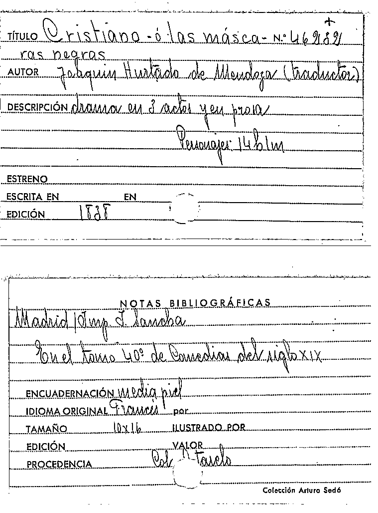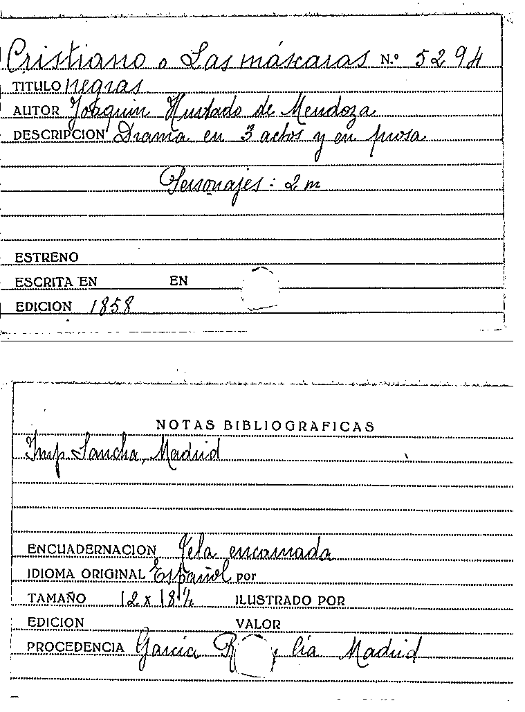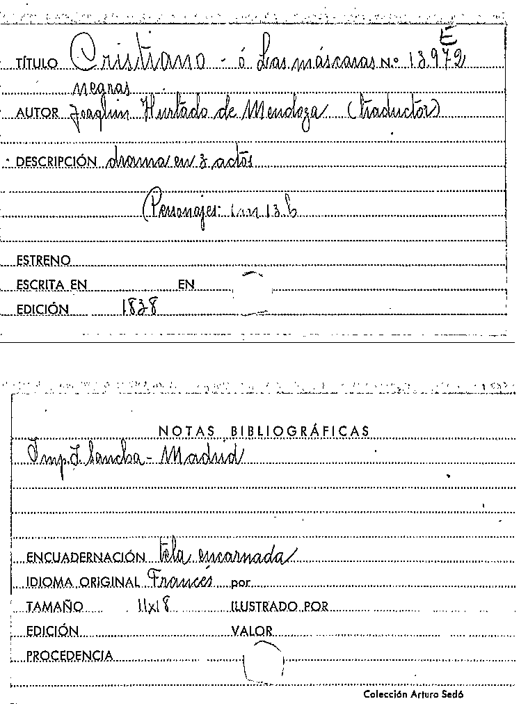 Cristiano, o, Las Máscaras negras / Joaquín Hurtado de Mendoza by