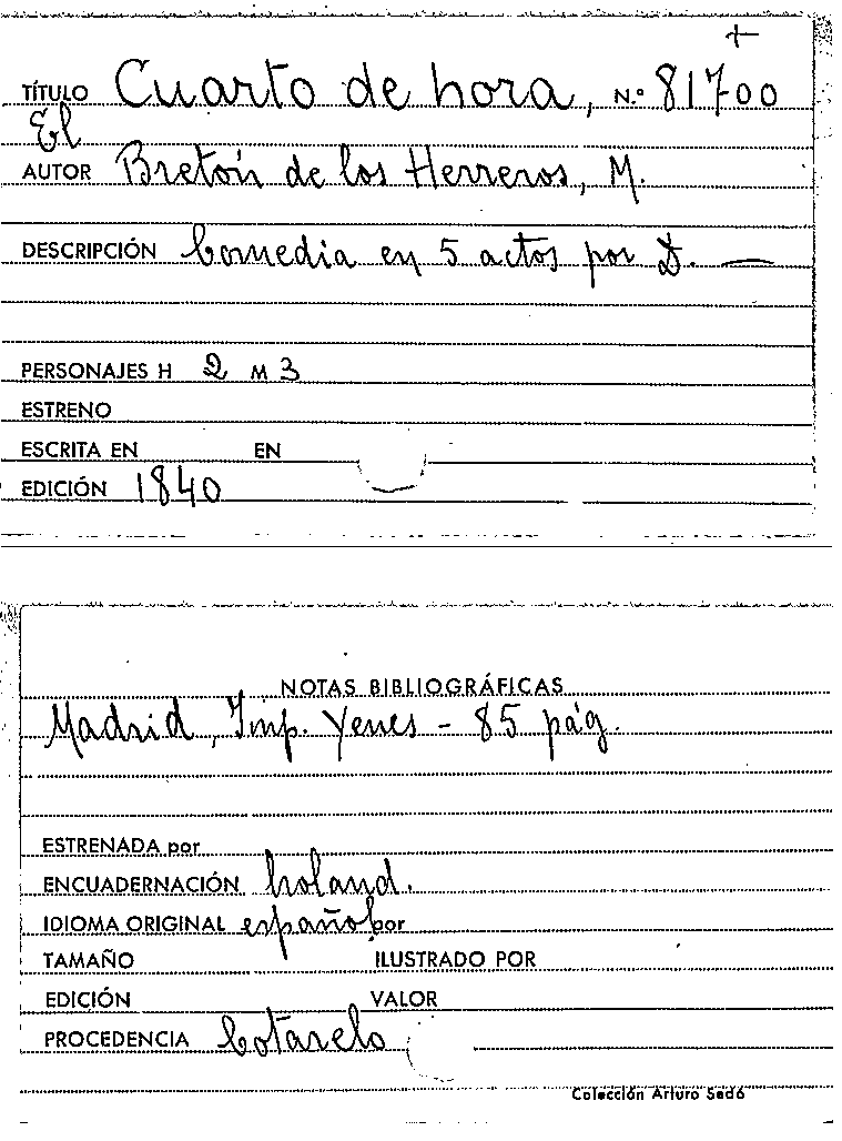 El Cuarto de hora / Manuel Bretón de los Herreros by