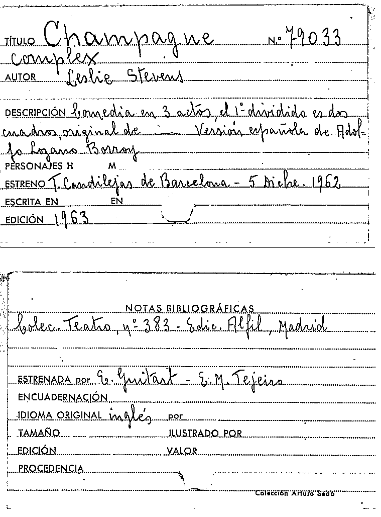 Champagne complex / Leslie Stevens by Series: Colección teatro (1951) ; 383