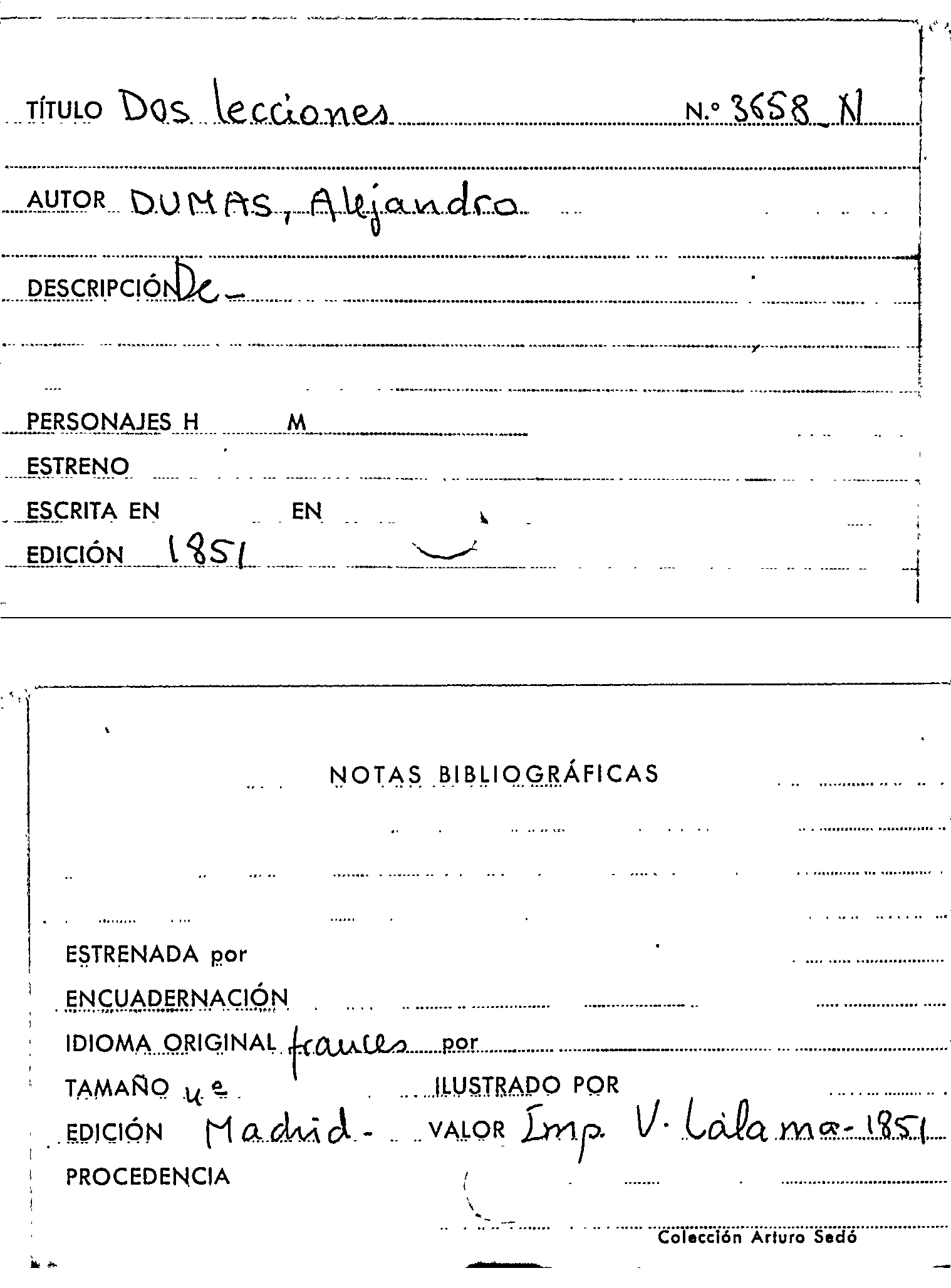 Dos lecciones / Alexandre Dumas by