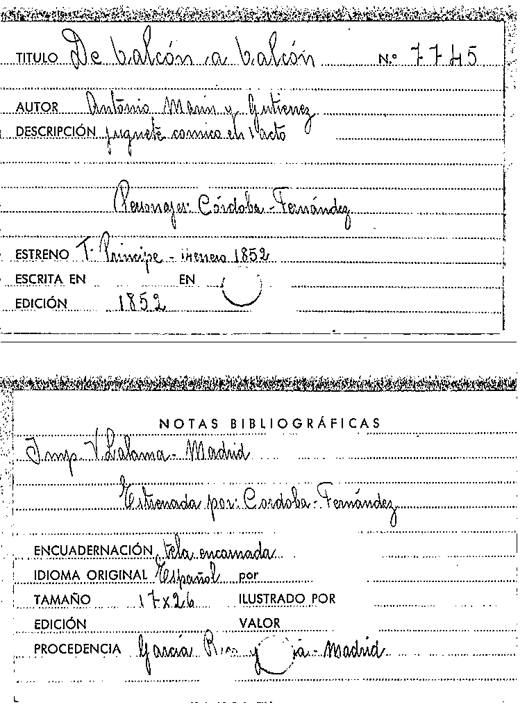 De balcón a balcón / Antonio Marín y Gutiérrez by