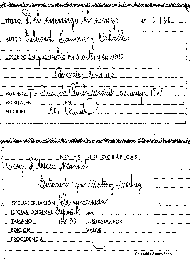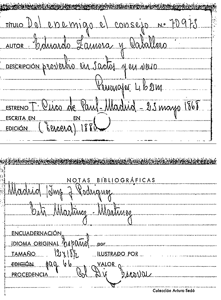 Del enemigo el consejo / Eduardo Zamora y Caballero by