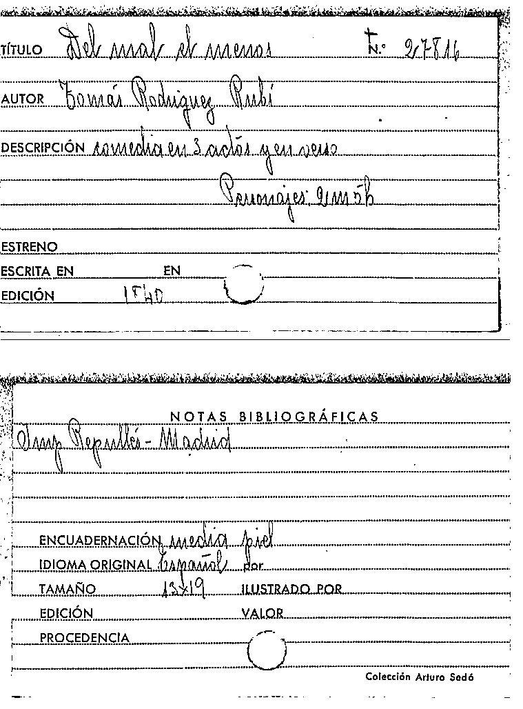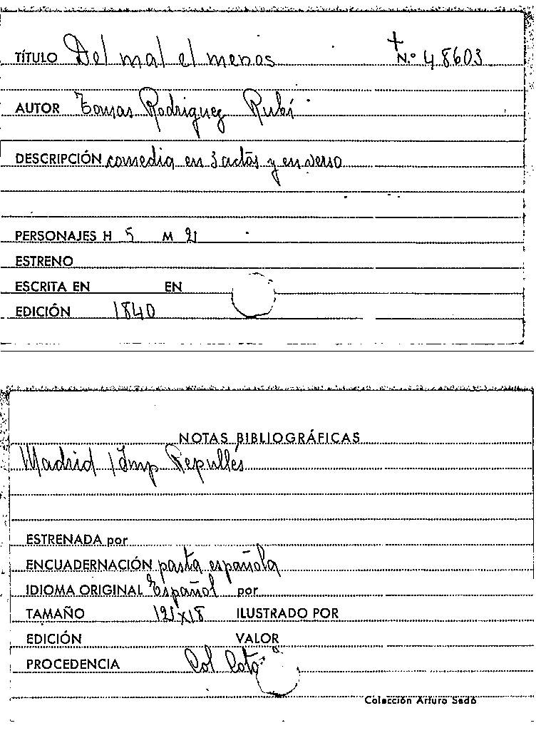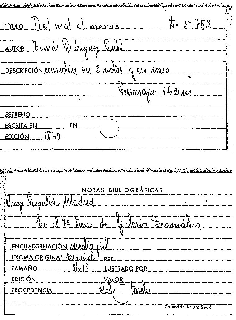 Del mal el menos / Tomás Rodríguez y Díaz Rubí by