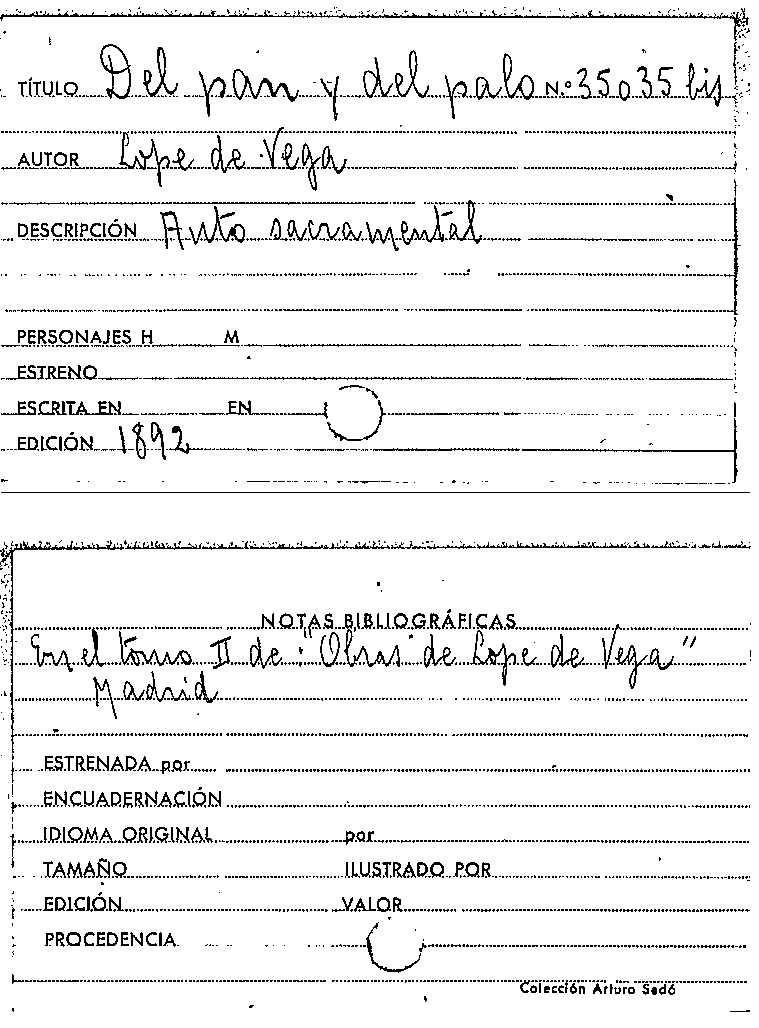 Del pan y del palo / Lope de Vega by