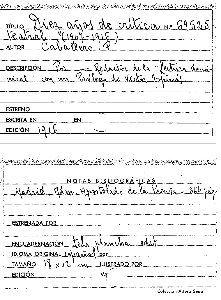 Diez años de crítica teatral (1907-1916) / P. Caballero by