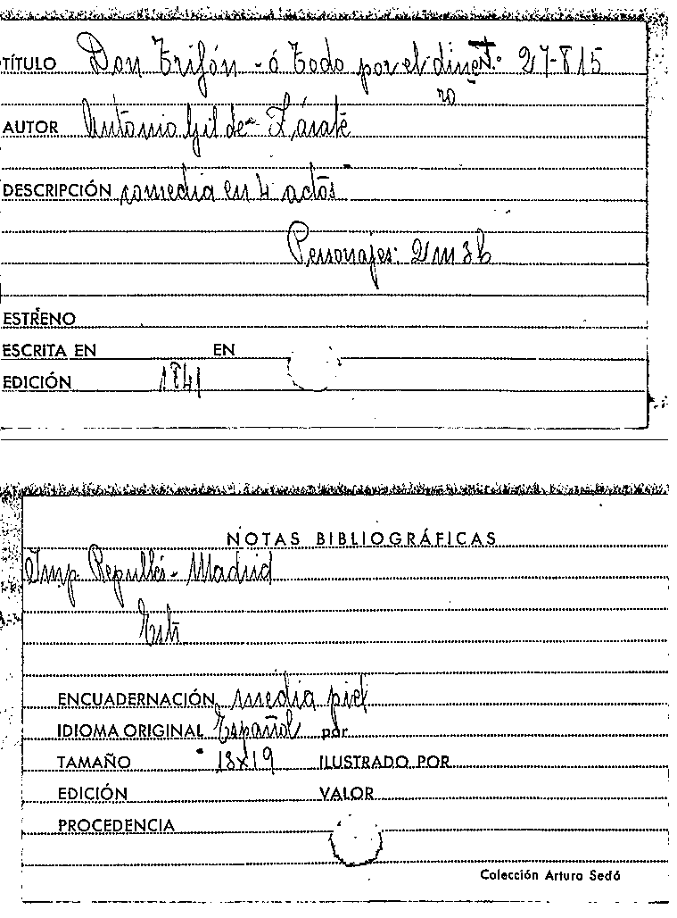 Publication details: Madrid: Talleres Tip. Sistemas de Control, 1945