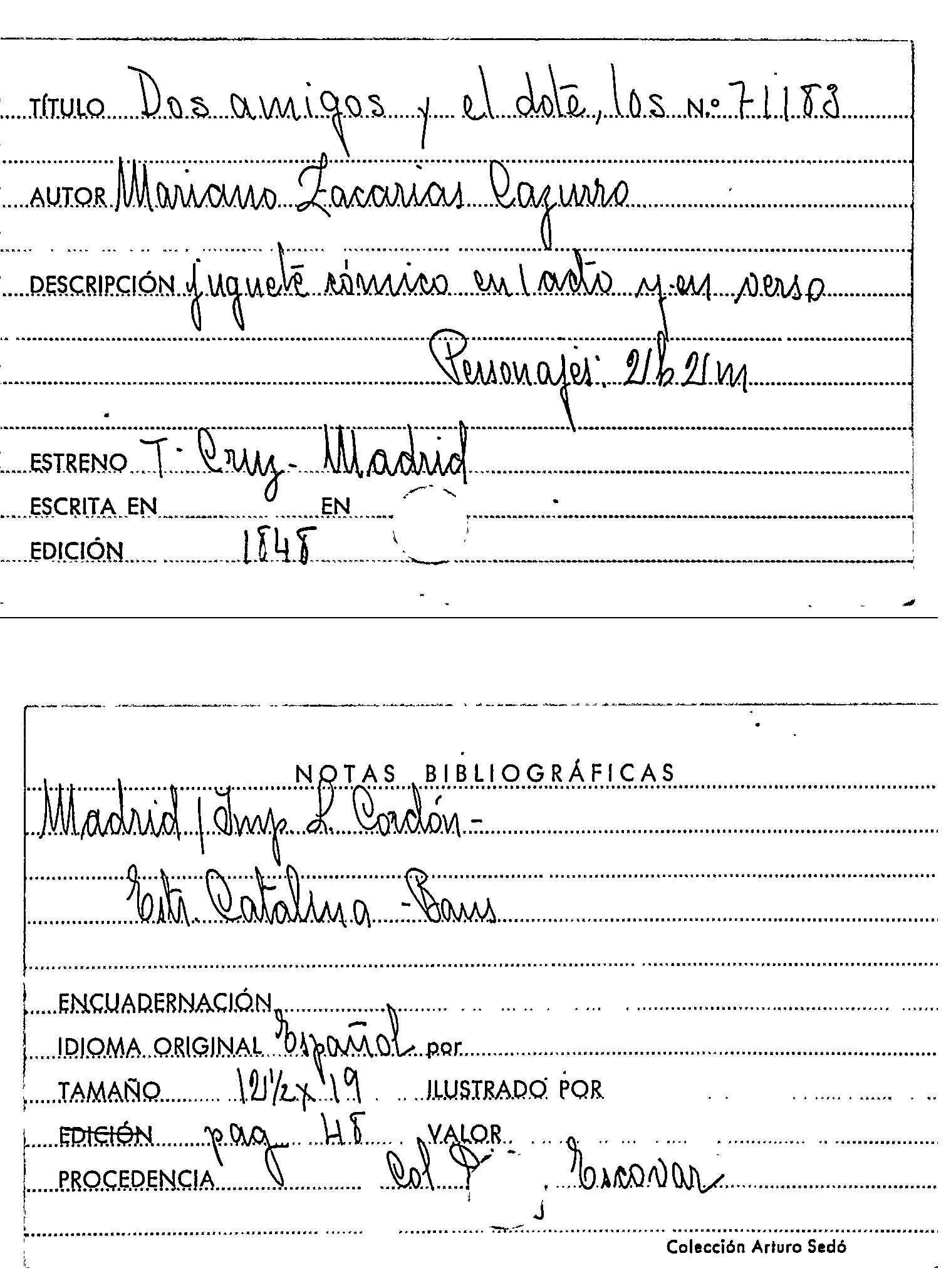 Los Dos amigos y el dote / Mariano Zacaría Cazurro by