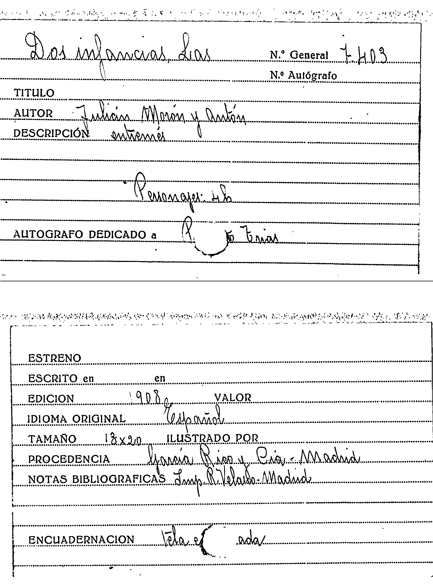 Publication details: Madrid : Imp. R. Velasco, 1908