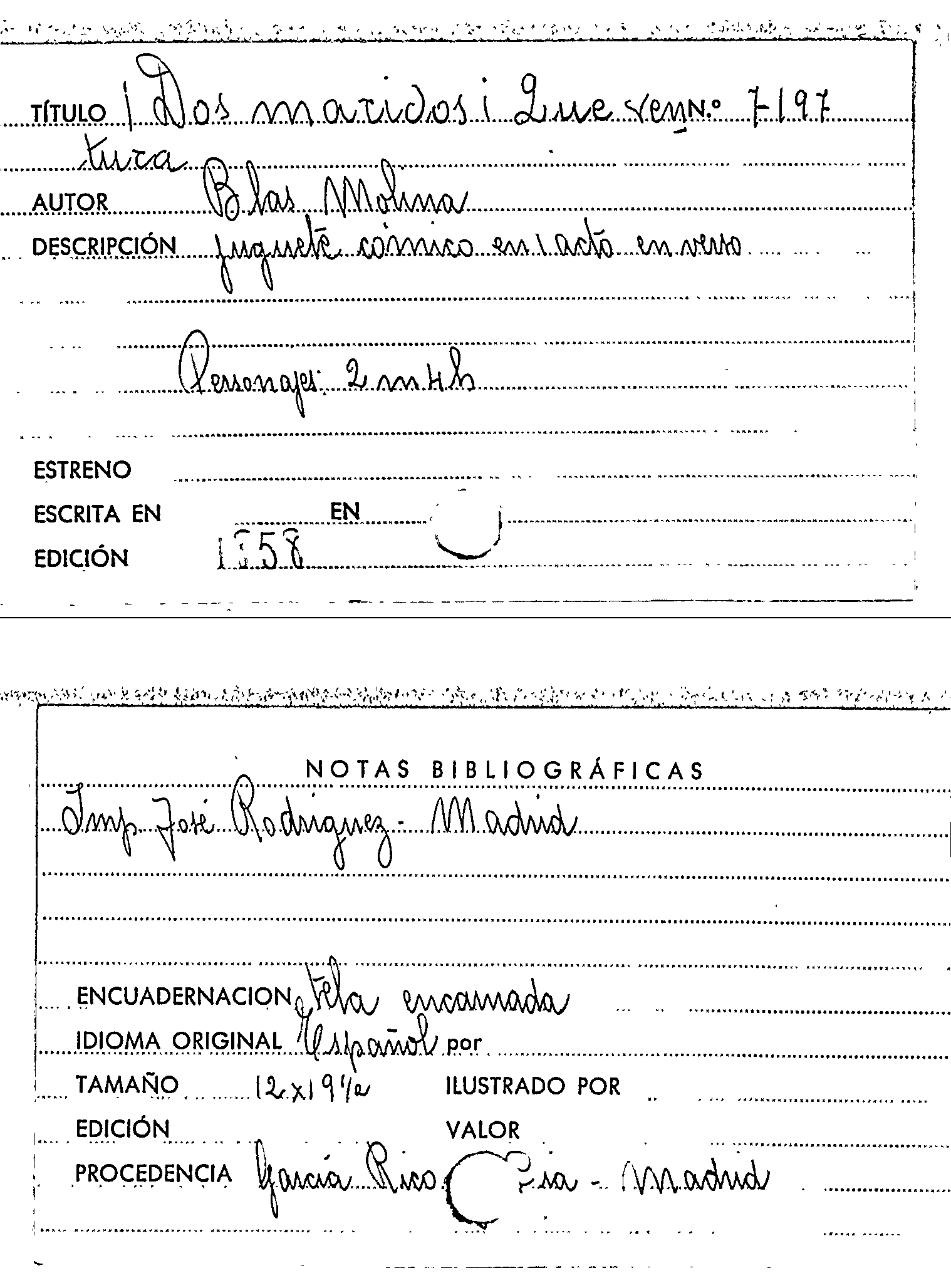 ¡Dos maridos! Que ventura / Blas Molina by