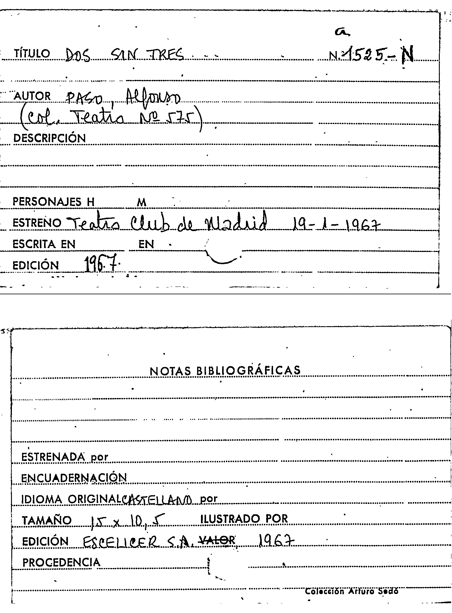 Dos sin tres / Alfonso Paso by Series: Colección teatro (1951) ; 575