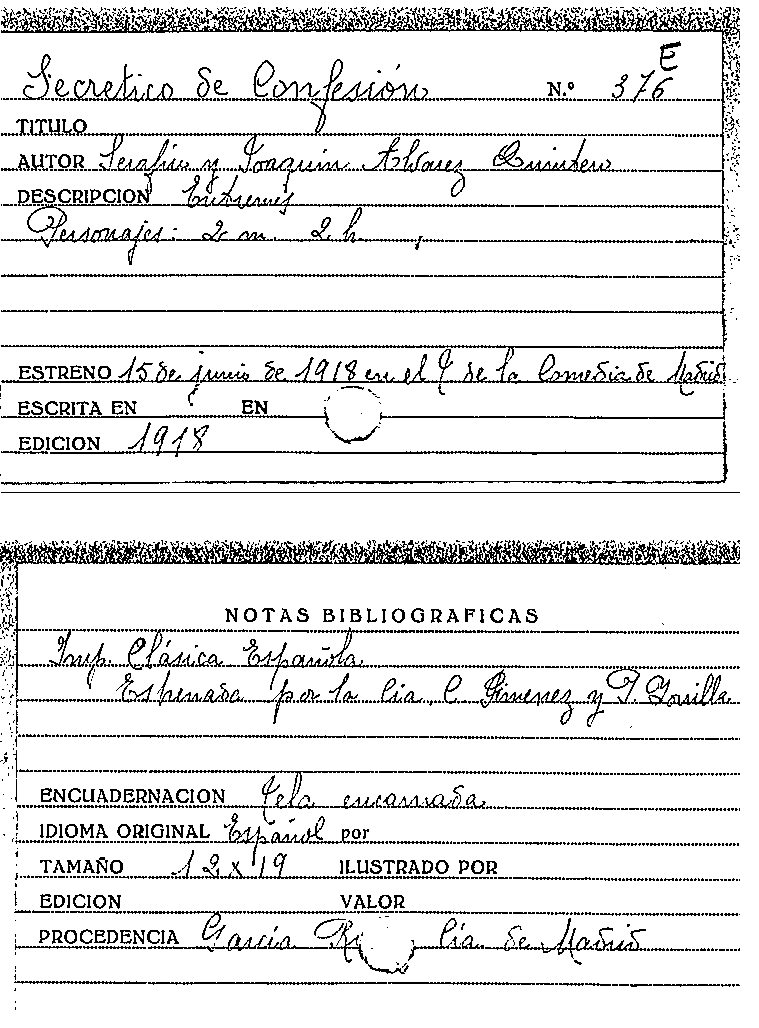 Secretico de confesión : entremés / Serafín y Joaquín Alvarez Quintero by