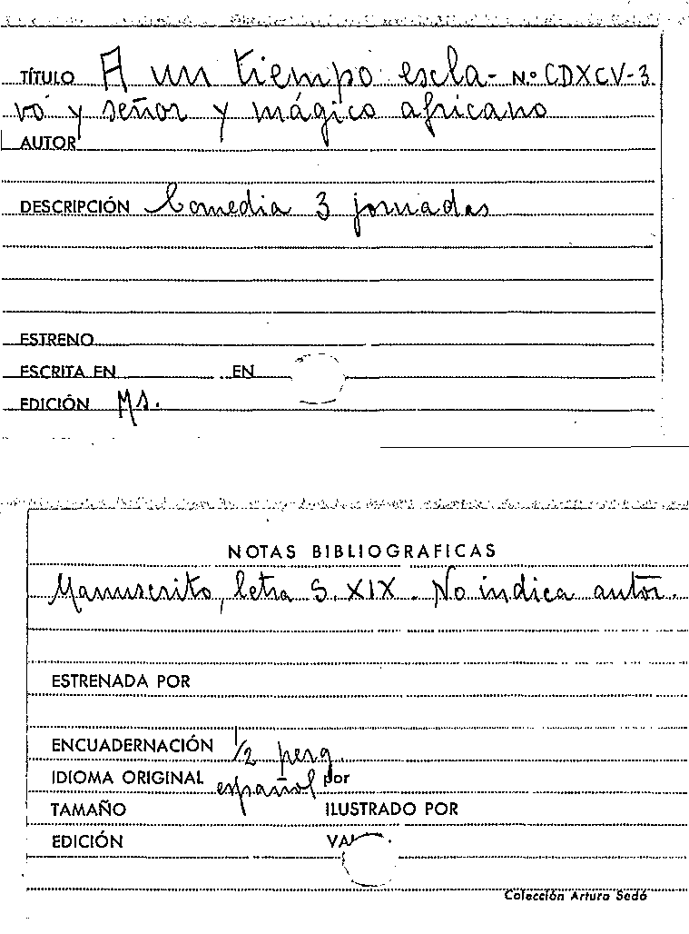 A un tiempo esclavo y señor y mágico africano [Manuscrit] / Anónimo by