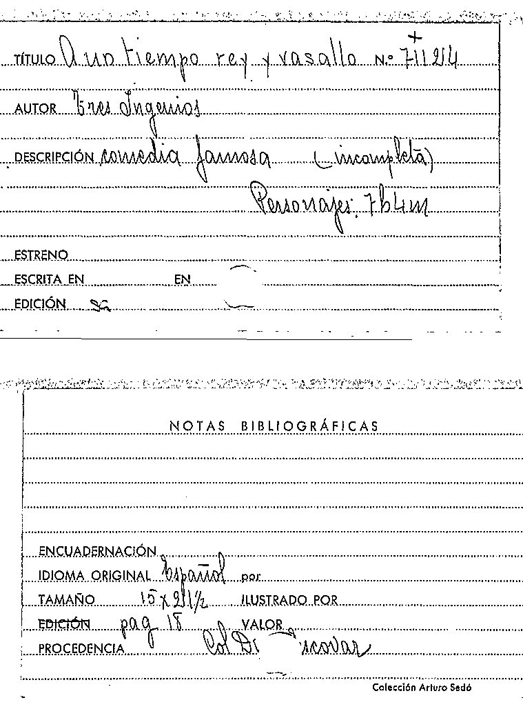 A un tiempo Rey, y vasallo / Tres Ingenios by
