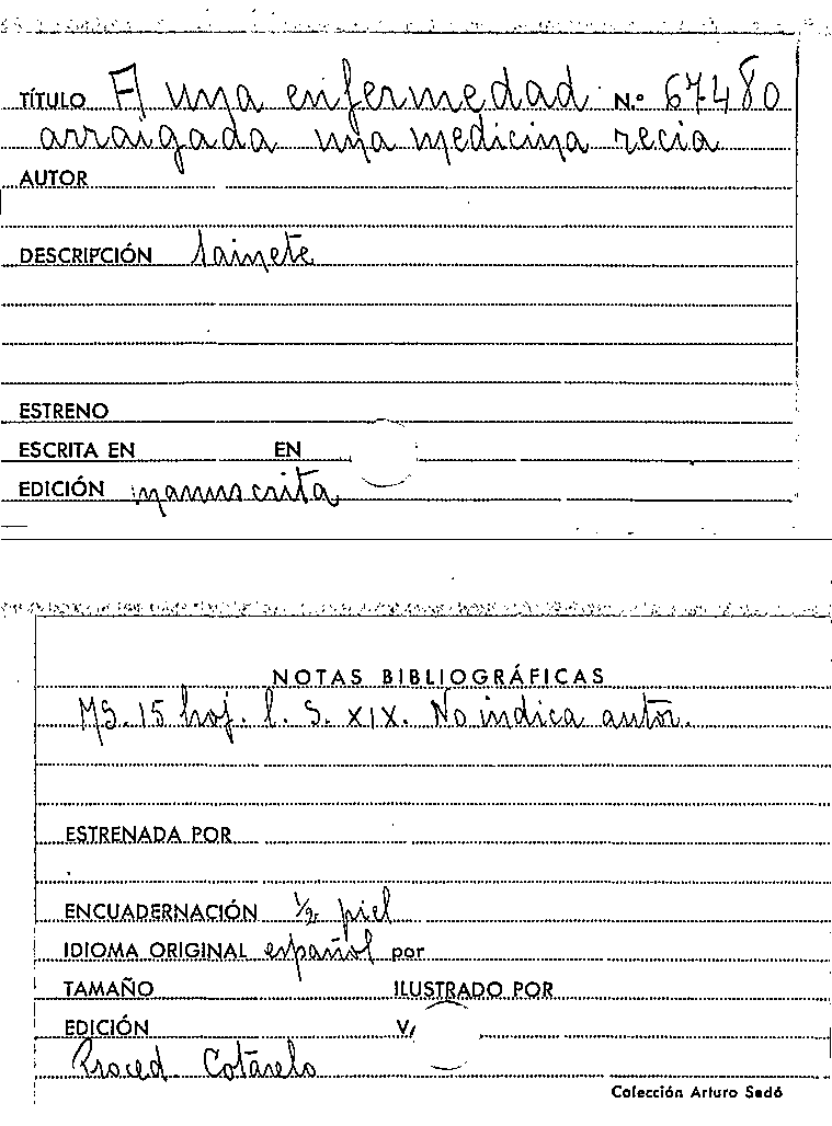 A una enfermedad arraigada una medicina [Manuscrit] / Anónimo by