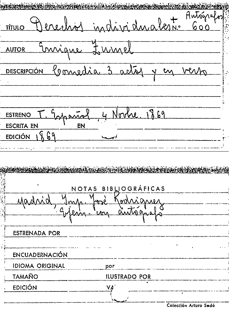 Derechos individuales : comedia en t res actos y en verso / original de Don Enrique Zumel by
