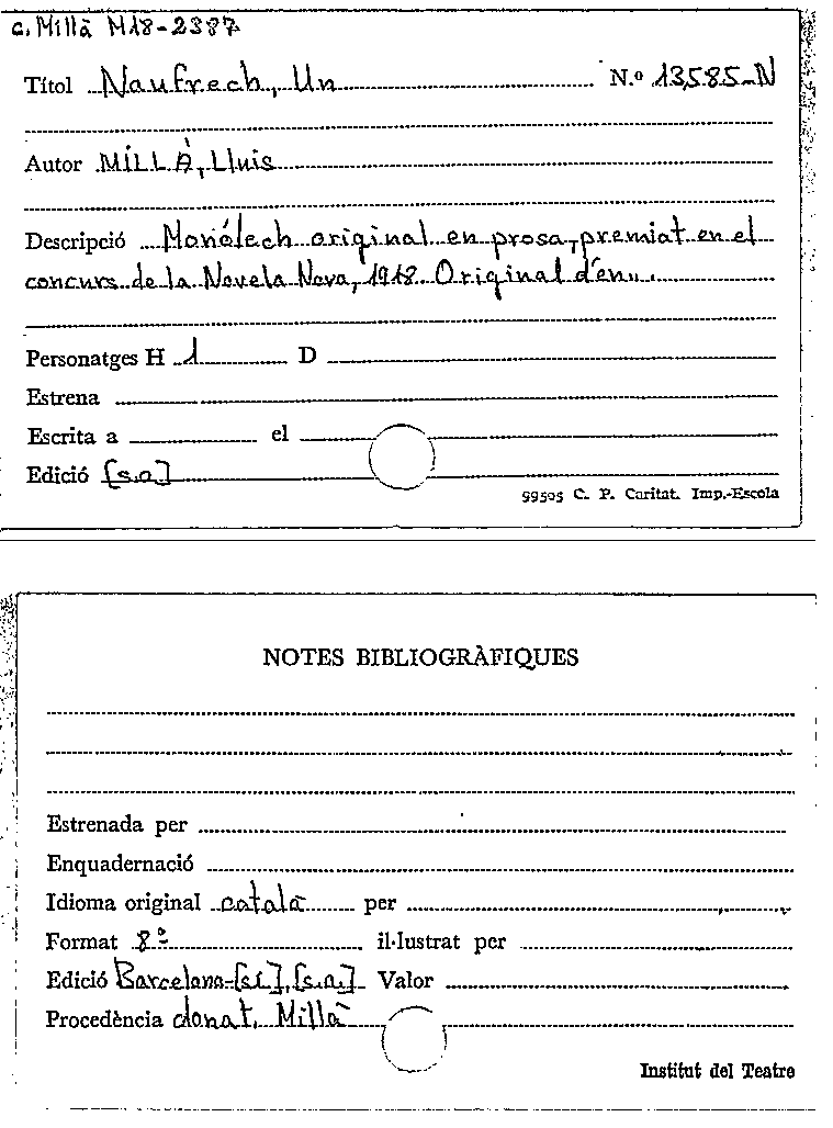 Availability: Items available for reference: Biblioteca Barcelona: Exclòs de préstec (1)Location, call number: BCN Magatzem Fons N 8818-N.