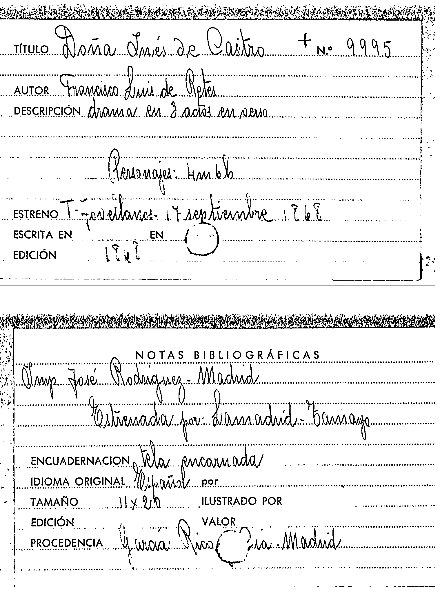 Doña Inés de Castro : drama en tres actos, en verso / original de Francisco Luis de Retes por