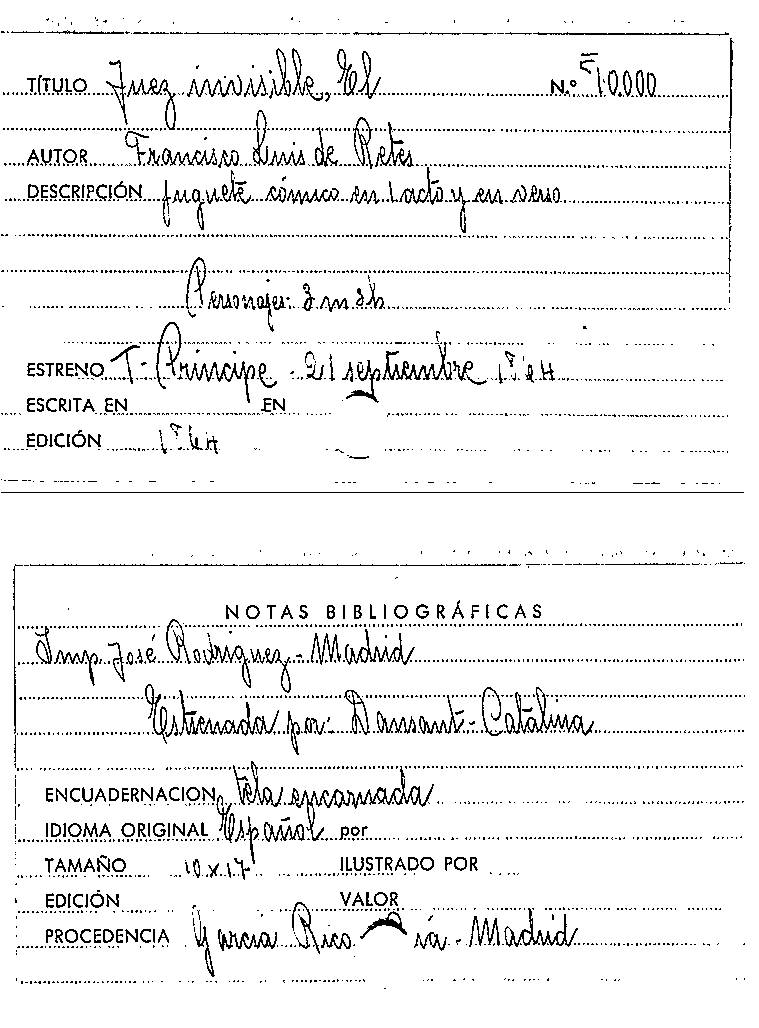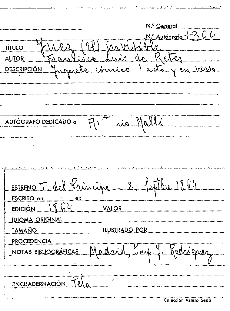 El Juez invisible : juguete cómico en un acto y en verso, escrito sobre el pensamiento de una comedia francesa / por Francisco Luis de Retes por