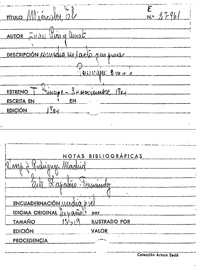 !El miércoles! : comedia en un acto y en prosa / original de Juan Rico y Amat por Series Colección de obras dramáticas y líricas. El Teatro
