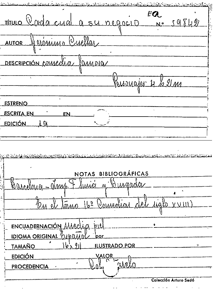 Cada cual a su negocio / Jerónimo de Cuellar by