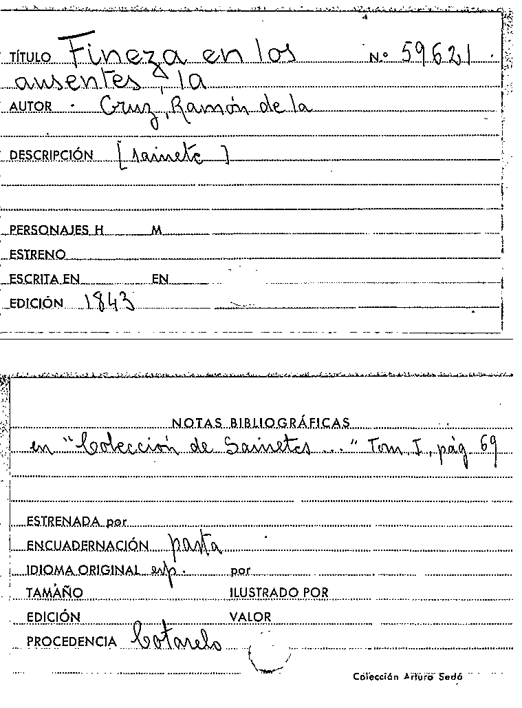 La Fineza en los Ausentes / Ramón de la Cruz by