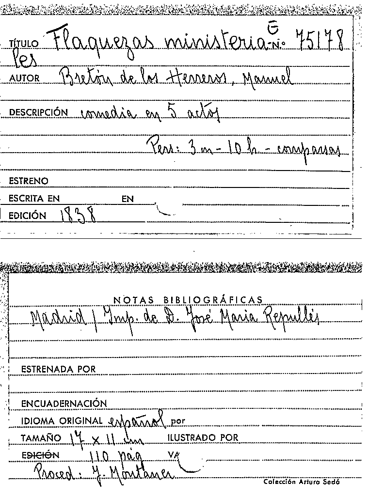 Flaquezas ministeriales / Manuel Bretón de los Herreros by