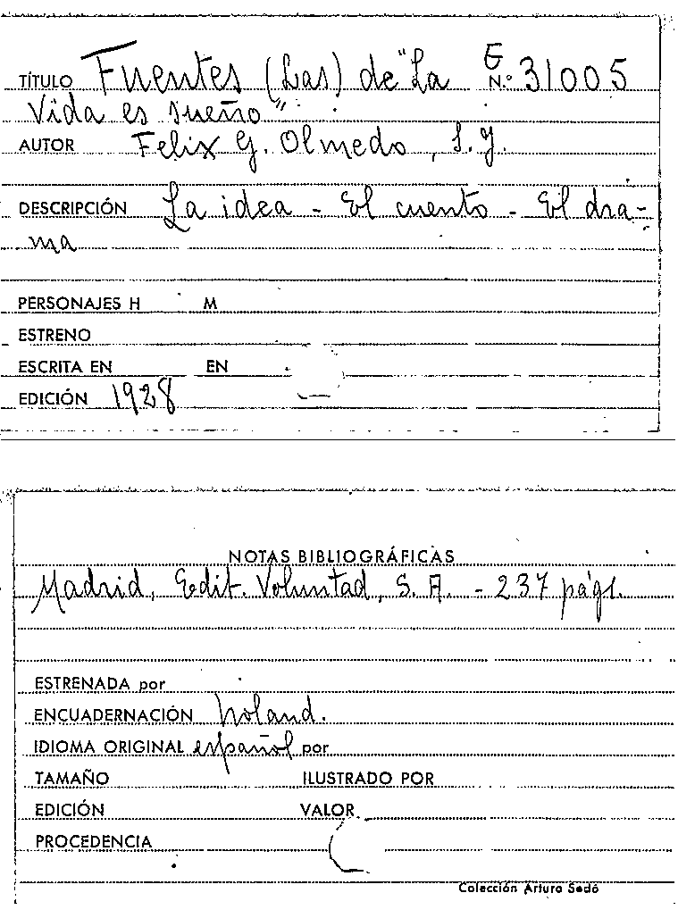 Las Fuentes de la vida es sueño / Félix G. Olmedo by