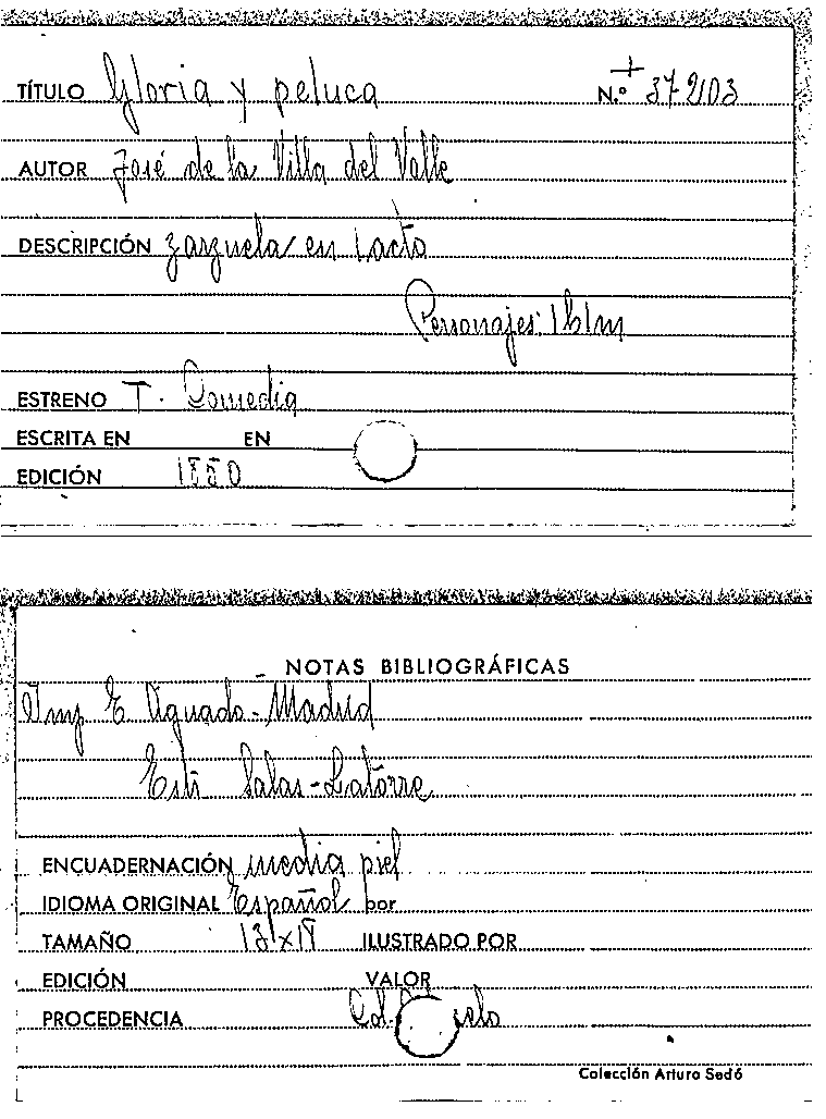 Gloria y peluca / José de la Villa del Valle by