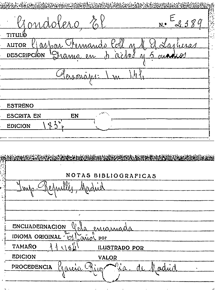 El Gondolero / Gaspar Fernando Coll , M.A. Lasheras by