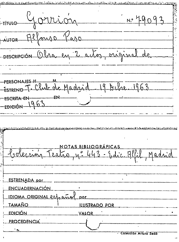 Gorrión / Alfonso Paso by Series: Colección teatro (1951) ; 443