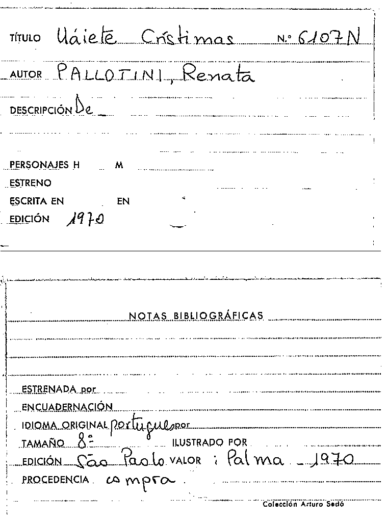 Publication details: Sao Paolo-Palma : s.n., 1970