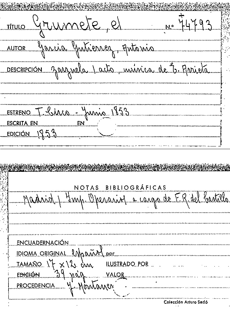 Publication details: Madrid: Imp. que fue de Operarios a cargo de F. R. del Castillo, 1853