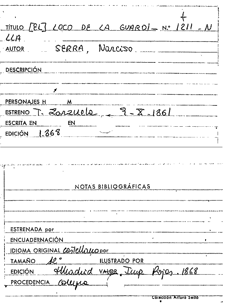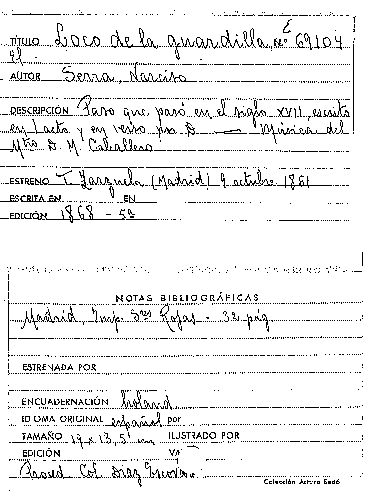 El Loco de la guardilla : paso que paso en el siglo XVII, escrito en un acto y en verso / por Narciso Serra ; música del maestro Manuel Caballero by