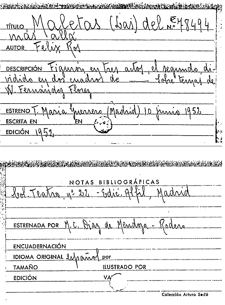 Las maletas del más allá : figurón en tres actos, el segundo dividido en dos cuadros. / Sobre temas de Wenceslao Fernández Flórez by Series: Colección teatro (1951) ; 22