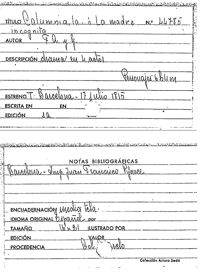 La Calumnia, ó, La Madre incognita / F. A., G. by