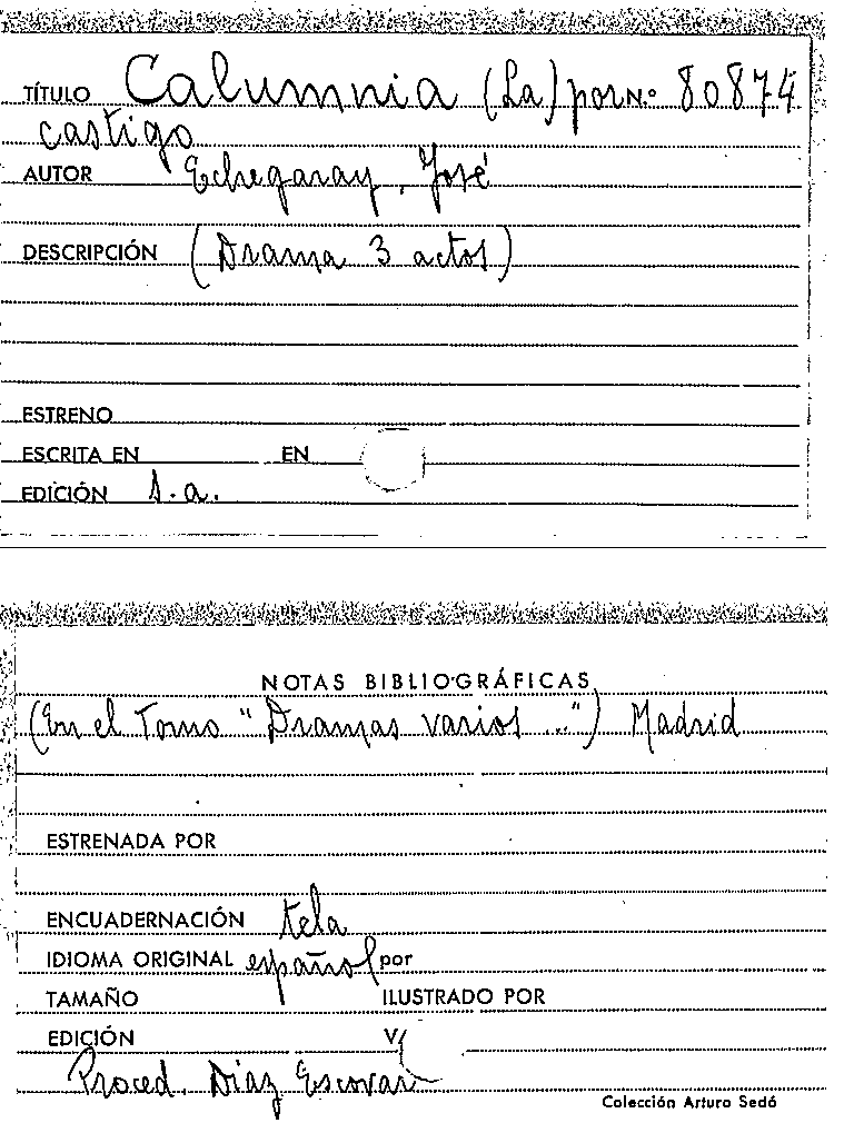 La Calumnia por castigo / José Echegaray by