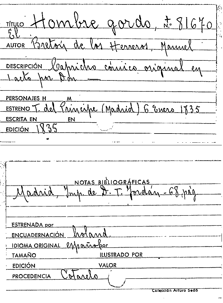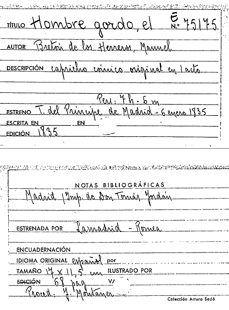El Hombre gordo / Manuel Bretón de los Herreros by