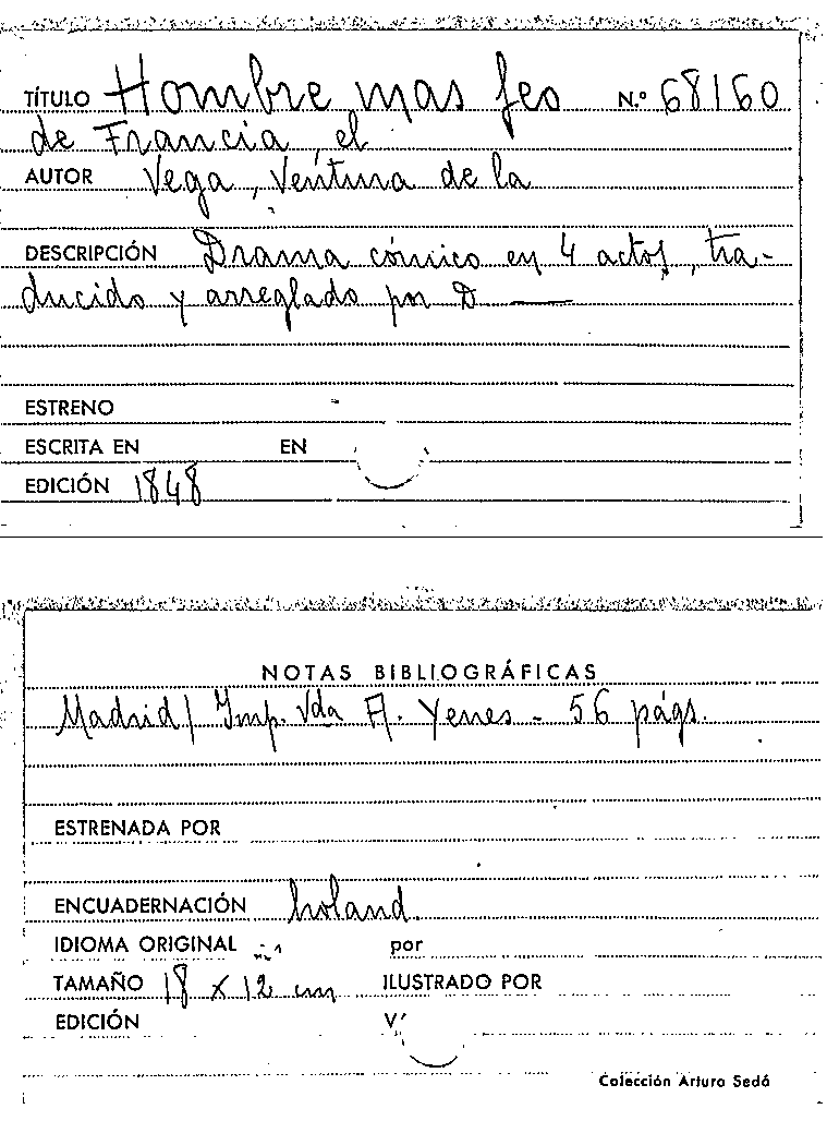 El Hombre mas feo de Francia / Ventura de la Vega by