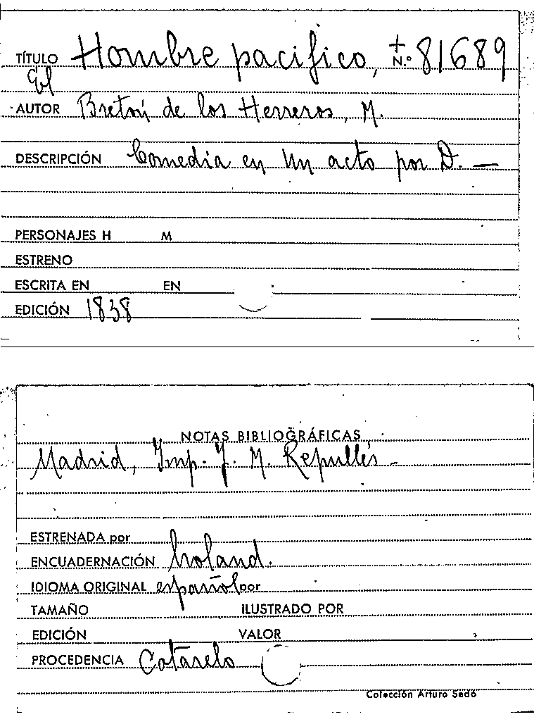El Hombre pacífico / Manuel Bretón de los Herreros by
